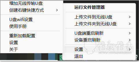 依次点击设置 - 创建右键快捷方式 - 选要增加的无线传输U盘点击后会在发送到增加一个快捷方式